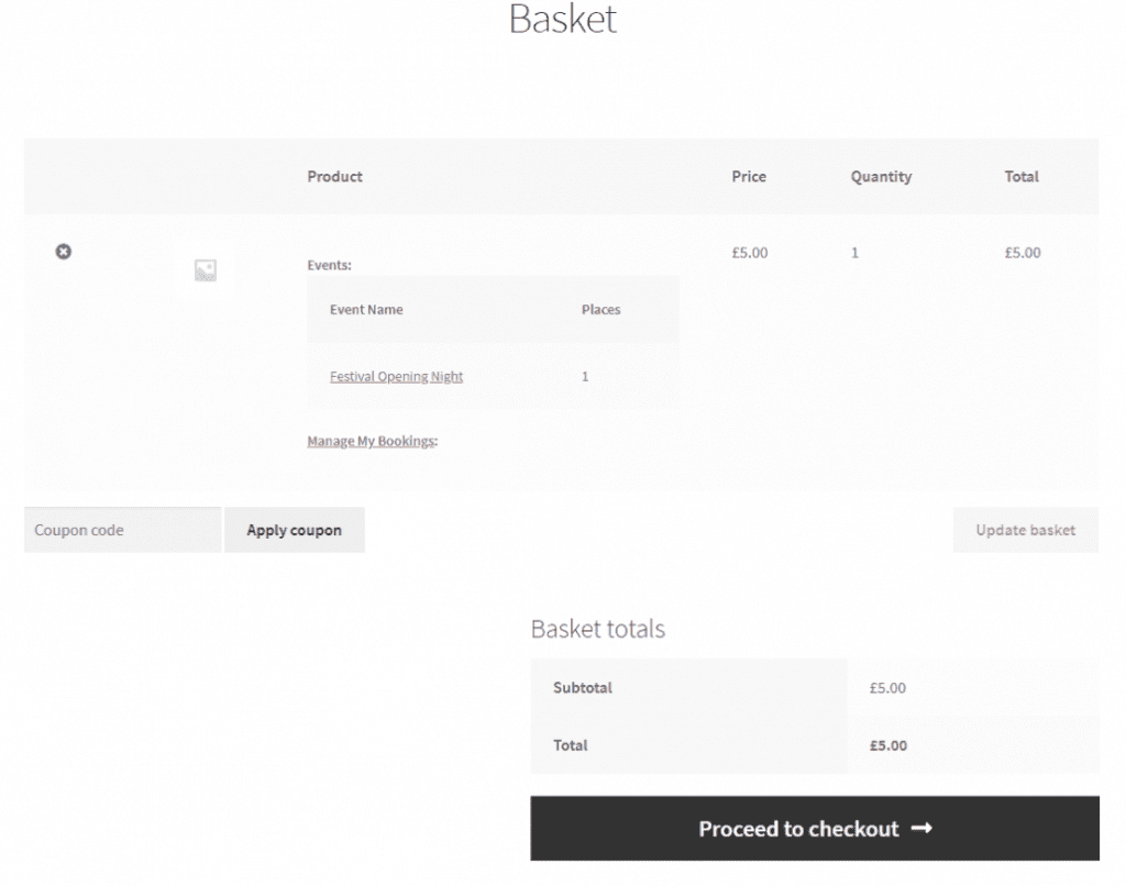 The plugin works by adding an ‘Event Booking’ WooCommerce product. Each time the cart is displayed the plugin checks for Pending (or Awaiting Payment or Awaiting Online Payment) event bookings. If any Pending bookings exist the plugin adds the Event Booking product to the cart with the event booking details in the cart item meta information. The visitor can then go through the checkout process in WooCommerce and once complete, the status of the bookings is changed to Approved.