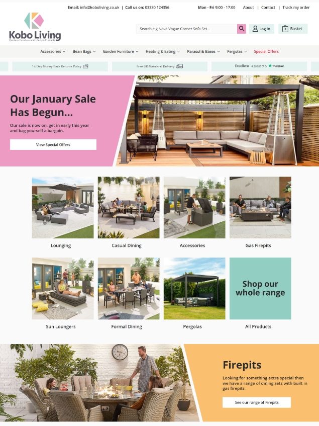 Kieran, the founder of Kobocrete, approached us with a vision to grow his business. He planned to launch Kobo Living, a new sister company with a dedicated website for supplying outdoor garden furniture and lifestyle products across the UK.